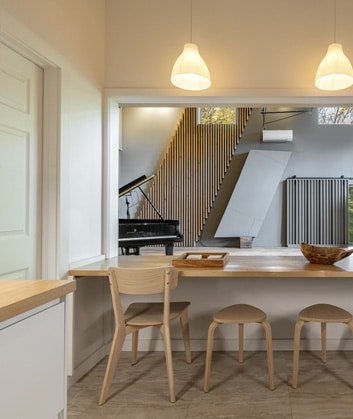 Onsite lodging means the “creative bubble” never has to pop. We provide a fully equipped private kitchen and three bedrooms (two queen, one full) offering a comfortable home base for soloists or ensembles working on multi day recordings.